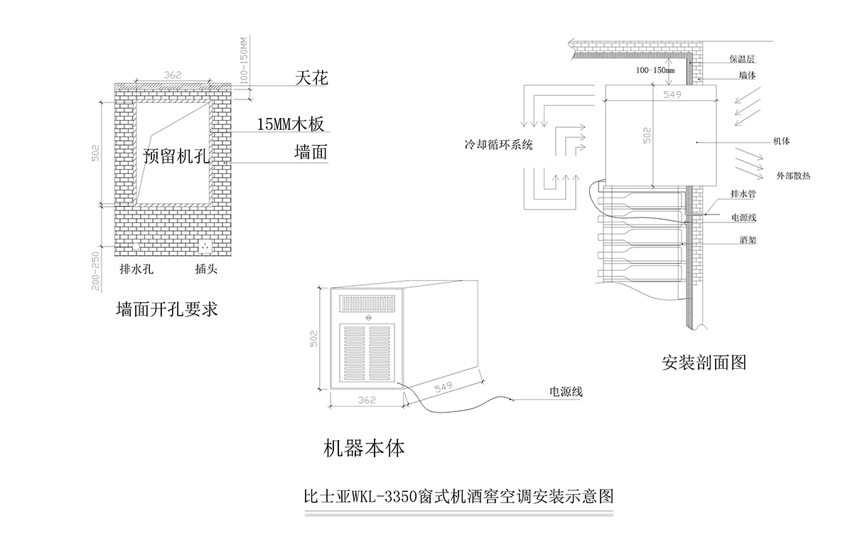 ? ?主要為標(biāo)高型酒窖空間安裝使用,室內(nèi)機(jī)與室外機(jī)采用銅管連接方式安裝,需要進(jìn)行現(xiàn)場的焊接安裝,機(jī)器的排水為自然排水,如果在地下室沒有自然排水需要外加強(qiáng)排水泵