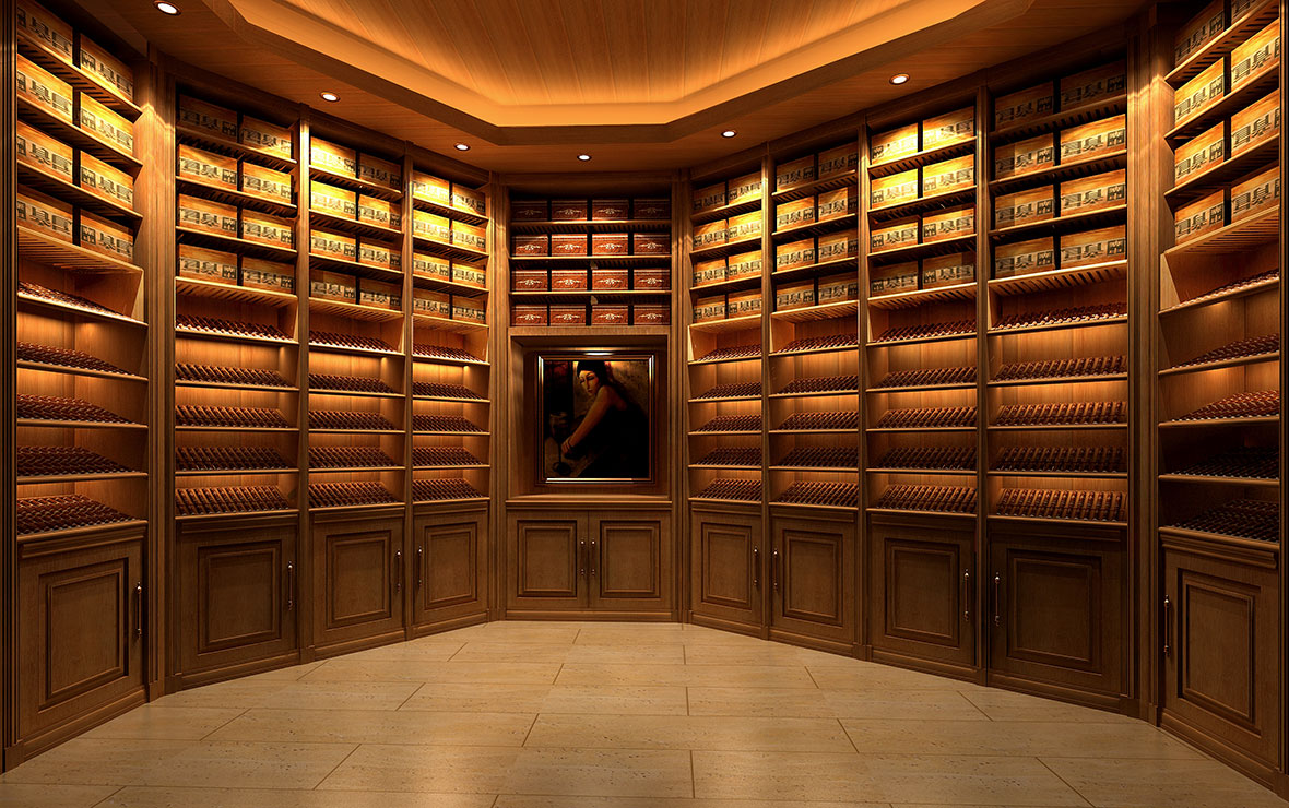 私人雪茄房設(shè)計效果圖-西班牙雪松木制作的恒溫恒濕私人雪茄房