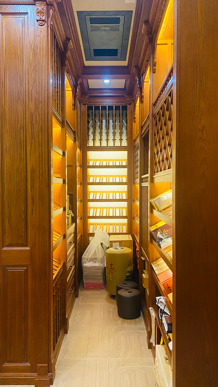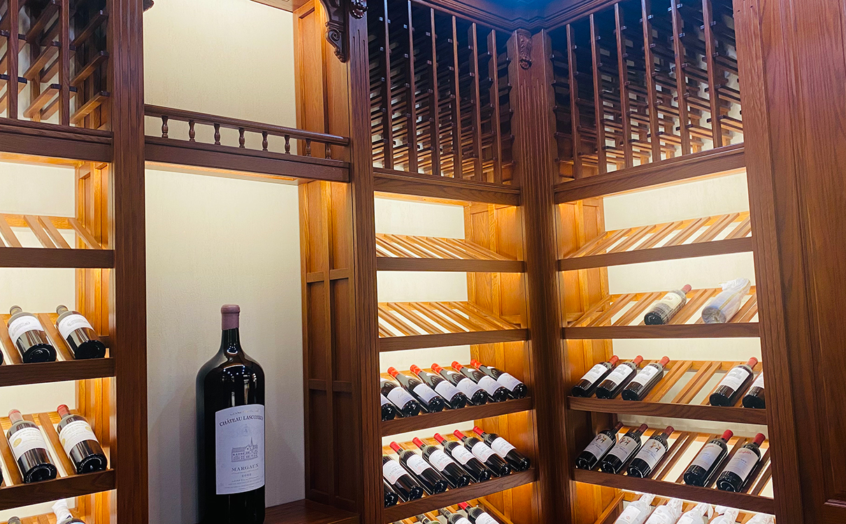 上海九間堂私人別墅酒窖空調(diào)設(shè)計(jì)與安裝調(diào)試項(xiàng)目中的:美國(guó)紅橡木實(shí)木酒架