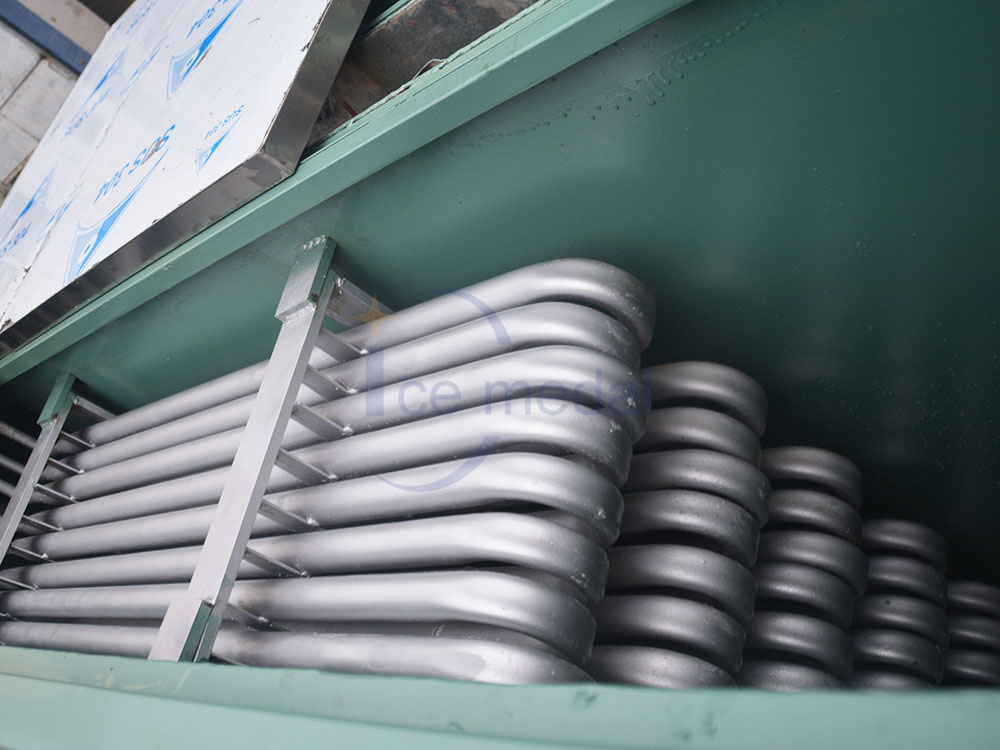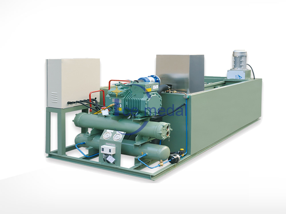 塊冰機(jī)又名冰磚機(jī),是制冰機(jī)中的一種,可分為直冷式塊冰機(jī)、鹽水式塊冰機(jī)、直冷集裝箱式塊冰機(jī)、鹽水制冰集裝箱式塊冰機(jī)。所制出的冰塊是冰類產(chǎn)品中外形尺寸大,與外界的接觸面積小,不容易融化??筛鶕?jù)不同要求粉碎成各種形式的冰塊。適用于冰雕、混凝土降溫、隧道降溫制冰機(jī)、冰塊儲(chǔ)存海運(yùn)、海上捕撈等。 粉碎后可以用于所有用冰的場所。但冰經(jīng)過粉碎后,會(huì)部分融化,冰量損耗。冰塊可以分為透明冰塊、乳白色冰塊和彩色冰塊。塊冰的尺寸可根據(jù)冰桶的大小進(jìn)行定制。