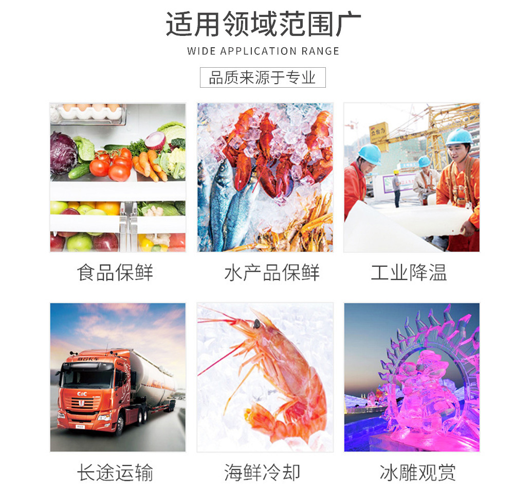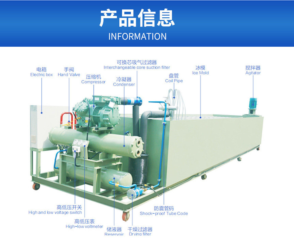 塊冰機(jī)又名冰磚機(jī),是制冰機(jī)中的一種,可分為直冷式塊冰機(jī)、鹽水式塊冰機(jī)、直冷集裝箱式塊冰機(jī)、鹽水制冰集裝箱式塊冰機(jī)。所制出的冰塊是冰類產(chǎn)品中外形尺寸大,與外界的接觸面積小,不容易融化。可根據(jù)不同要求粉碎成各種形式的冰塊。適用于冰雕、混凝土降溫、隧道降溫制冰機(jī)、冰塊儲(chǔ)存海運(yùn)、海上捕撈等。 粉碎后可以用于所有用冰的場(chǎng)所。但冰經(jīng)過(guò)粉碎后,會(huì)部分融化,冰量損耗。冰塊可以分為透明冰塊、乳白色冰塊和彩色冰塊。塊冰的尺寸可根據(jù)冰桶的大小進(jìn)行定制。