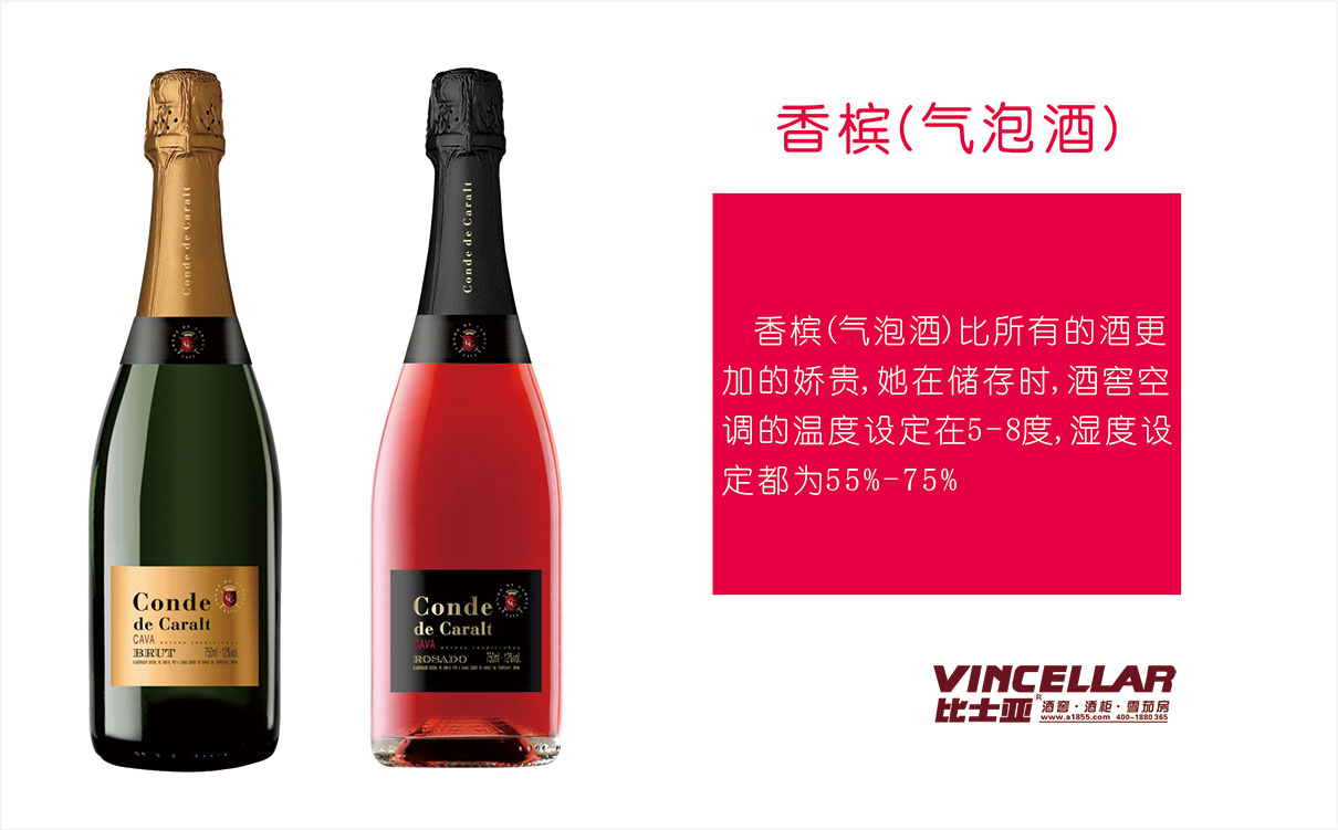 香檳(氣泡酒)比所有的酒更加的嬌貴,她在儲存時,酒窖空調(diào)的溫度設(shè)定在5-8度