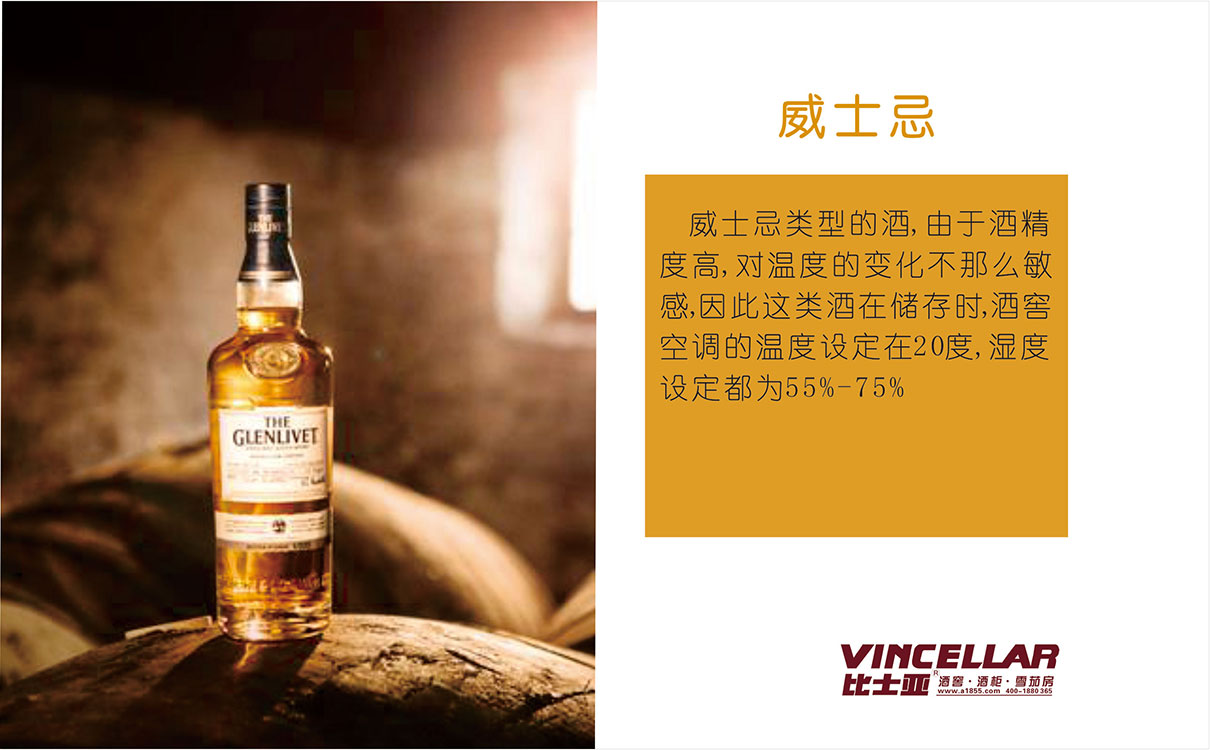 威士忌類型的酒,由于酒精度高,對溫度的變化不那么敏感,因此這類酒在儲存時,酒窖空調(diào)的溫度設(shè)定在20度