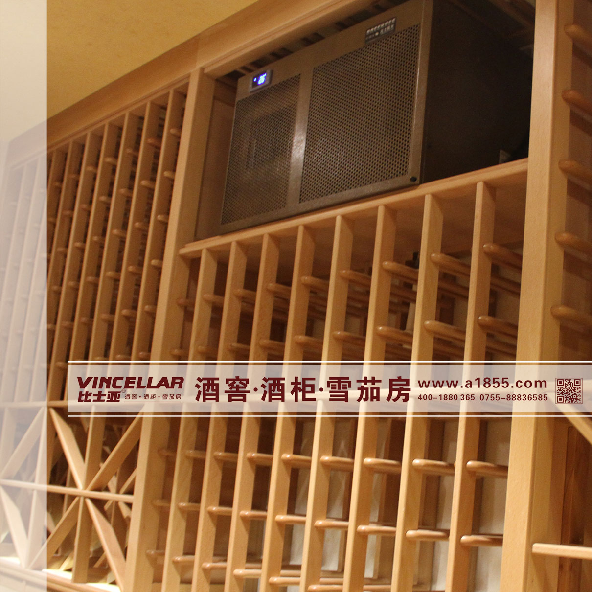 歐洲櫸木實木酒窖中的恒溫恒濕機圖片A