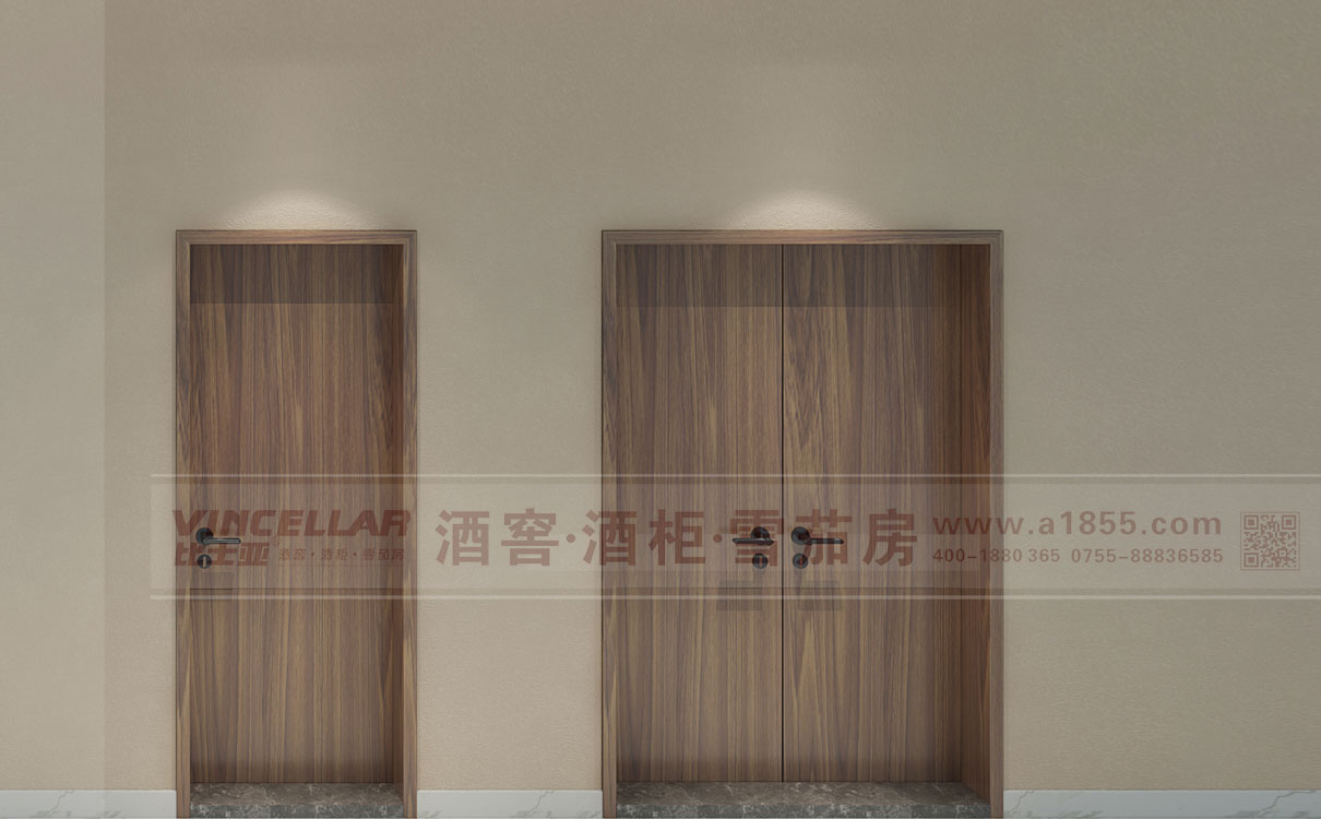 比士亞[VINCELLAR]極簡系列酒窖專用保溫隔熱門,采用全現(xiàn)場定制模式,門可分為單開門與雙開門,門頁以全實(shí)木門內(nèi)嵌40mm厚酒窖專用保溫層,分別以:歐洲櫸木,美國紅橡木,巴西花梨木,緬甸柚木四種材質(zhì)的效果圖展示